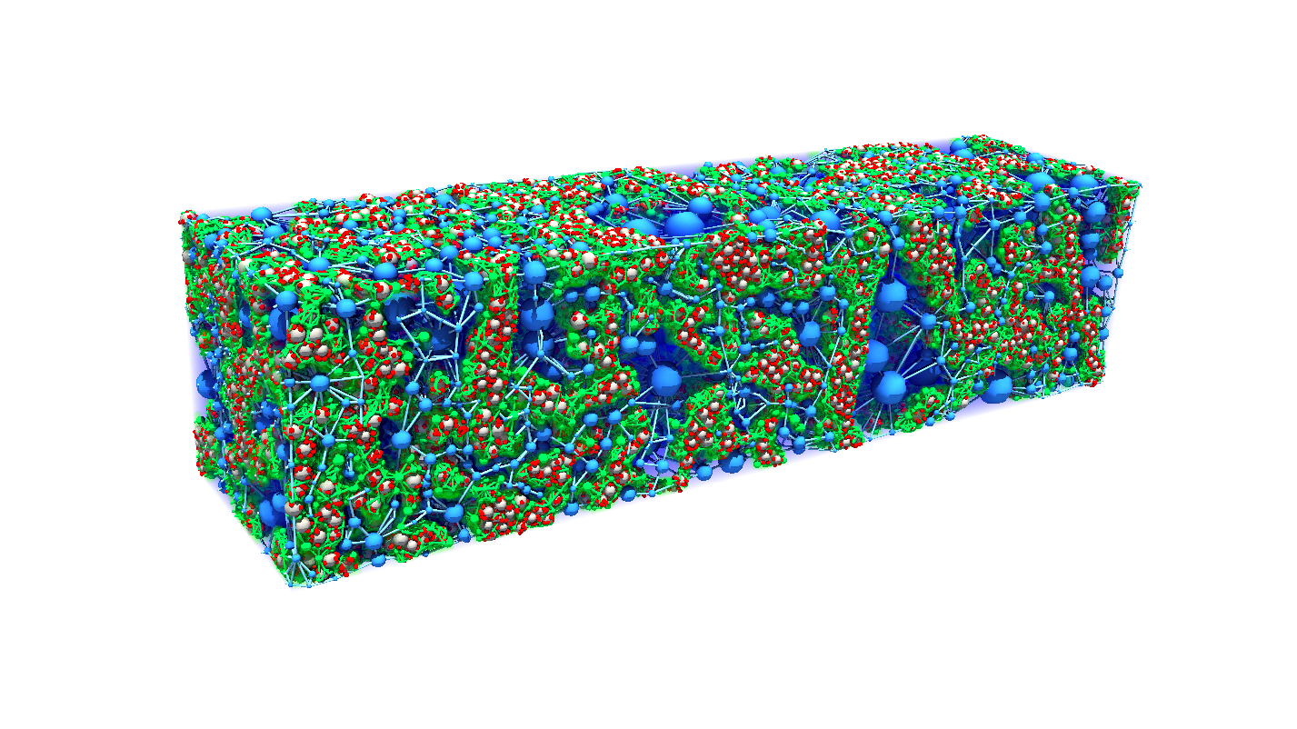 The above progress in network extraction allowed us to build “the ultimate” pore network model of a fuel cell catalyst layer. These layers consist of FOUR phases: void, ionomer, carbon and platinum. Gas diffusion in the void space and dissolves into the ionomer phase. Ions travel through the ionomer phase and meet dissolved gas at the catalyst sites. Electrons travel through the carbon backbone to the reaction sites as well. The transport of all these species is directly coupled to the microscopic structure of each phase so this problem is a great candidate for PNMs.